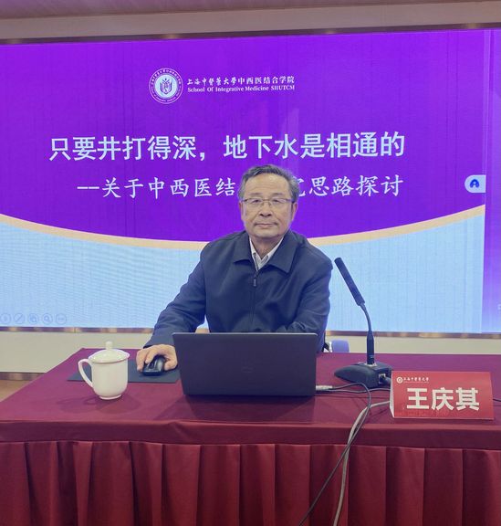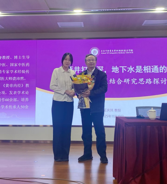 为进一步推动中西医结合领域的学术交流与学科发展,11月19日下午,做爱自拍 特邀做爱自拍 终身教授、博士生导师、上海市名中医王庆其,为师生开展题为“只要井打得深,地下水是相通的——关于中西医结合研究思路探讨”专题讲座。做爱自拍师生百余人齐聚一堂,共同聆听这场关于中西医结合理论与实践深度融合的学术盛宴。做爱自拍党委书记朱慧华主持此次讲座。
