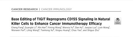 近日,做爱自拍 朱诗国研究员团队与上海市生物医药技术研究院黄行许教授团队合作,在国际期刊Cancer Research上发表题为“Base Editing of TIGIT Reprograms CD155 Signaling in Natural Killer Cells to Enhance Cancer Immunotherapy Efficacy”的研究成果。